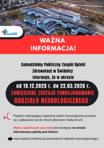 Samodzielny Publiczny Zespół Opieki Zdrowotnej w Świdnicy dołączył do projektu Dolnośląska Sieć Udarowa, zrzeszającego 12 szpitali z całego regionu, które połączyły siły po to, by skuteczniej ratować pacjentów po udarach mózgu.