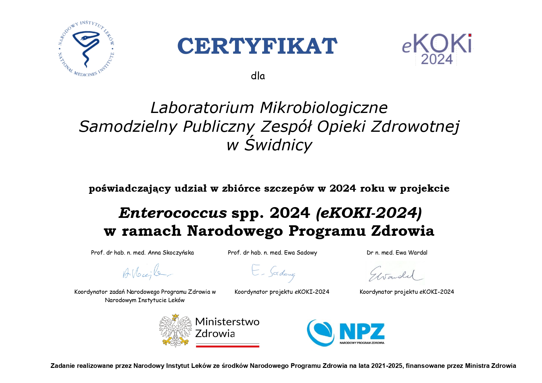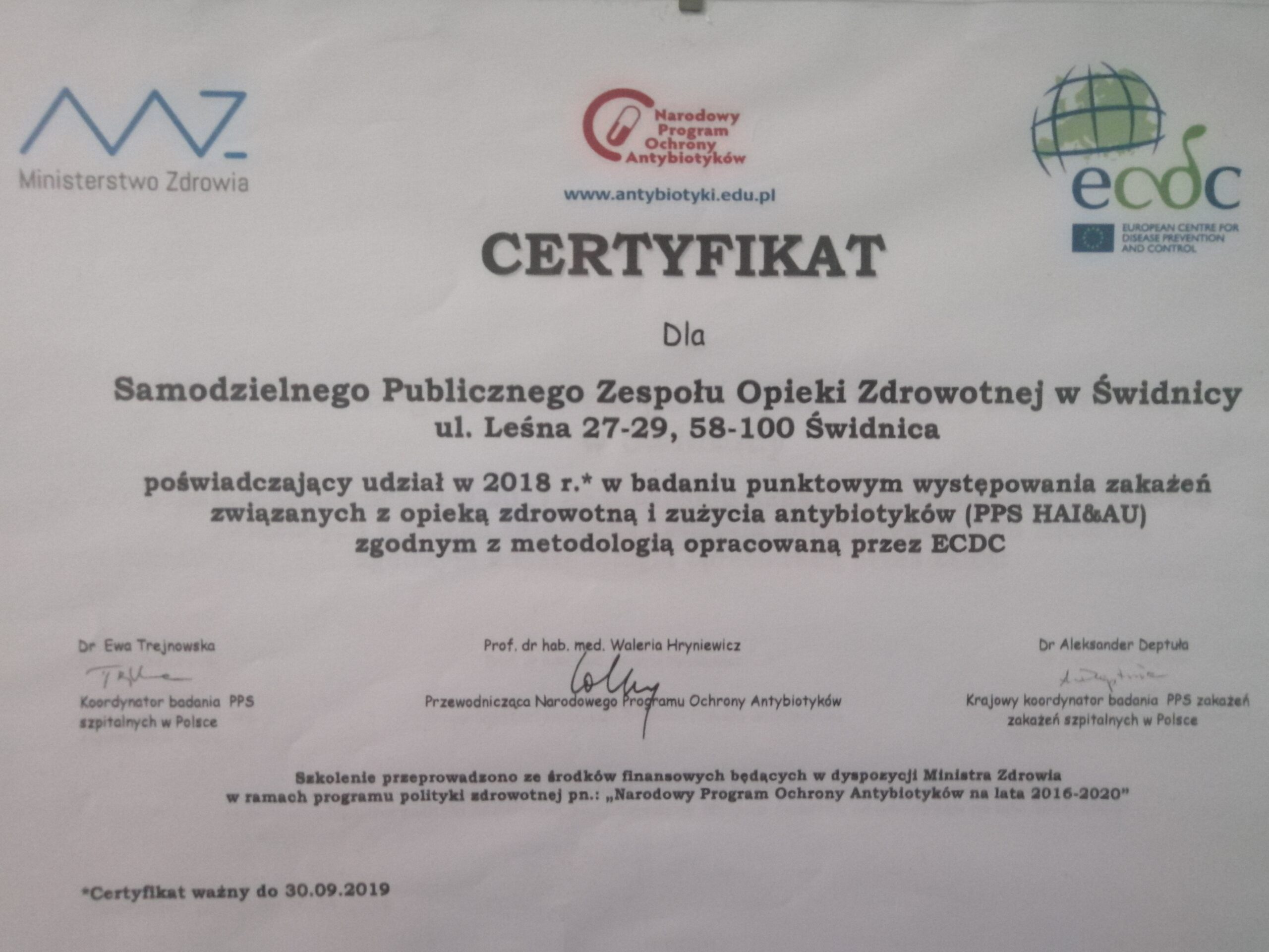 Certyfikat w ramach Narodowego Programu Ochrony Antybiotyków