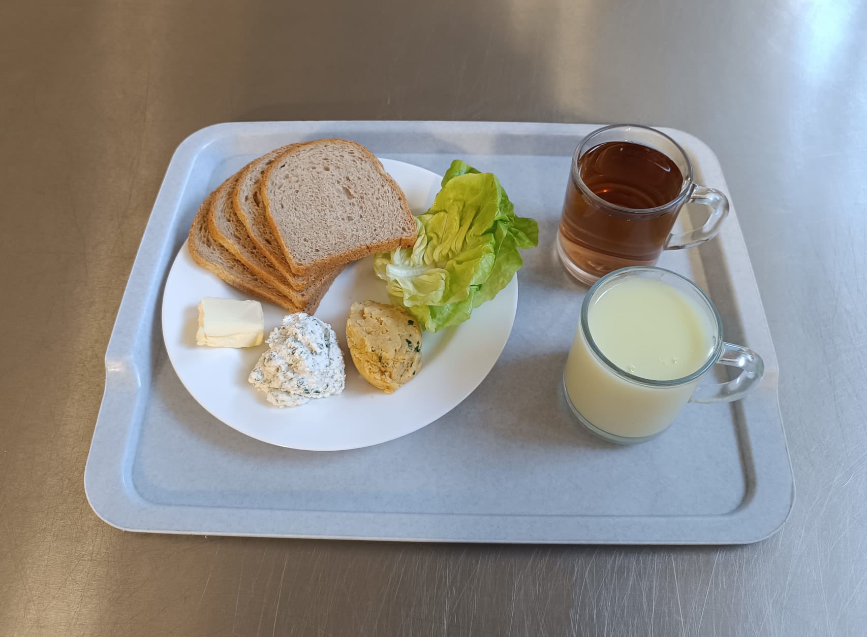 DIETA PODSTAWOWA Zupa mleczna z kaszą kukurydzianą 350 ml (MLE, GLU pszenny, ORZ migdały, ORZ ziemne, SOJ, GOR, ZIA), chleb pszenno-żytni 100g (GLU pszenny, GLU żytni), masło 82% 15g (MLE), jajecznica na parze 120g (MLE, JAJ), sałata lodowa 35g, roszponka 10g, kakao bez cukru 300 ml (MLE) |