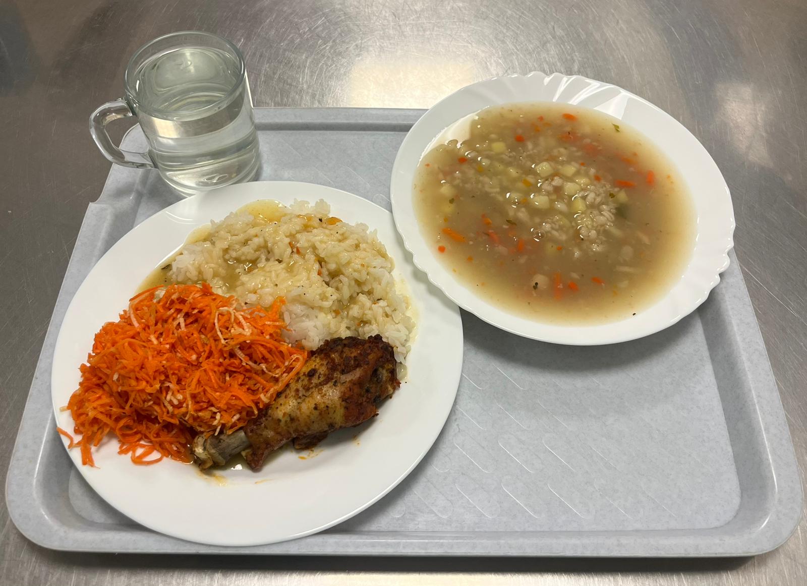 DIETA PODSTAWOWA Krupnik z kaszą jęczmienną 350g (GLU jęczmie, ORZ migdały, ORZ włoskie, SEL, SOJ, GOR, ZIA), potrawka z kurczaka w sosie własnym z warzywami (cukinia, dynia, brokuł, marchew) 300g (GLU pszenny, SOJ, GOR, ZIA), ryż biały 200g (GLU pszenny, ORZ migdały, ORZ ziemne, ORZ włoskie, SOJ, GOR, ZIA), woda z cytryną 300ml |