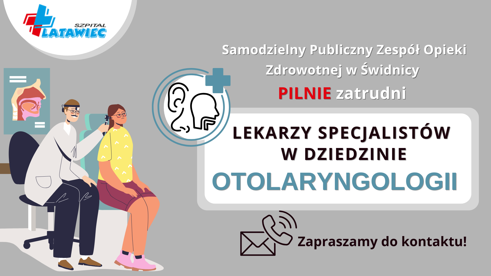 Samodzielny Publiczny Zespół Opieki Zdrowotnej w Świdnicy pilnie poszukuje do współpracy lekarzy specjalistów w dziedzinie otolaryngologii (K/M).
